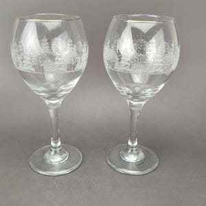 Cascade by Import Associates Etched Crystal Clear Wine Glasses - Set of 2 - Scrolled Bell Pattern