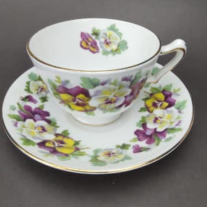 The pattern features light pink flowers with gray leaves on white porcelain with platinum trim.